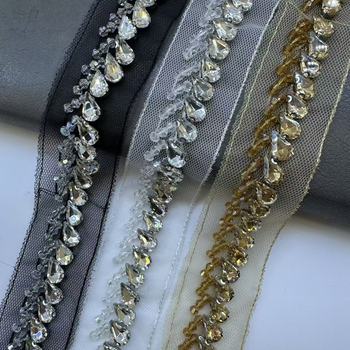 Latest Fashion Handmade Crystal Beaded Lace Trim