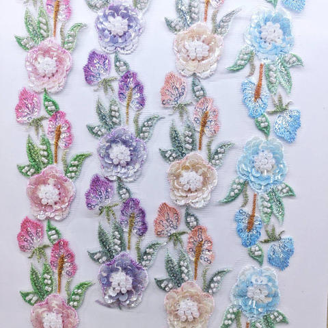 Custom Multi Colors Bling Sequins Floral Embroidery Decorative Lace Trim
