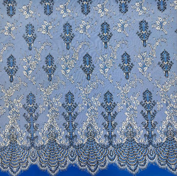 Tela de encaje francés con cuentas blancas de fantasía directa de fábrica