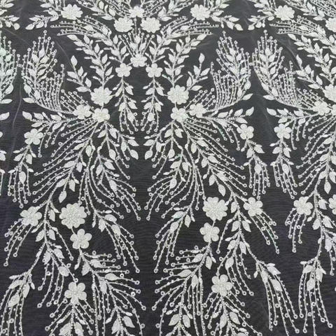 Factory Direct Fancy 3D Flower Beaded Embroidery Sequined Lace Fabric
