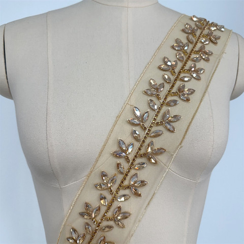 Luxus handgemachte goldene Kristall Strass Trim Spitze für Abend Hochzeits kleid