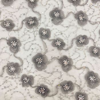 Ưa thích màu xám bạc 3D hoa đính cườm thêu cho váy ren vải